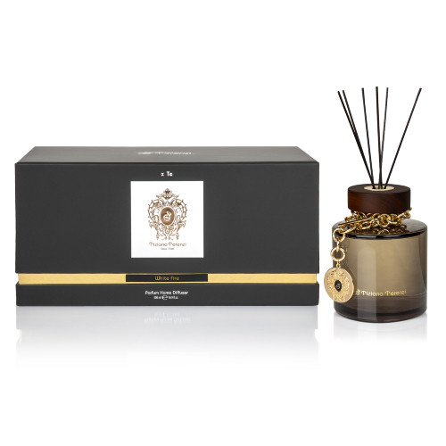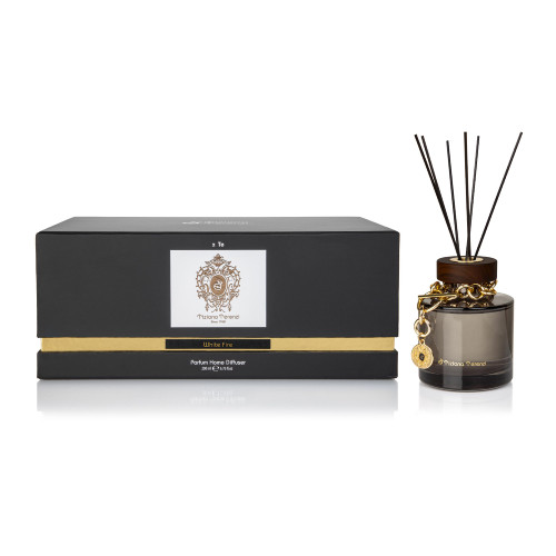 擴香瓶以深色簡約盒身搭配金色細節,展現低調奢華感。瓶身煙燻玻璃搭配木質瓶蓋與金屬吊飾,優雅精緻,兼具視覺美感與收藏價值。